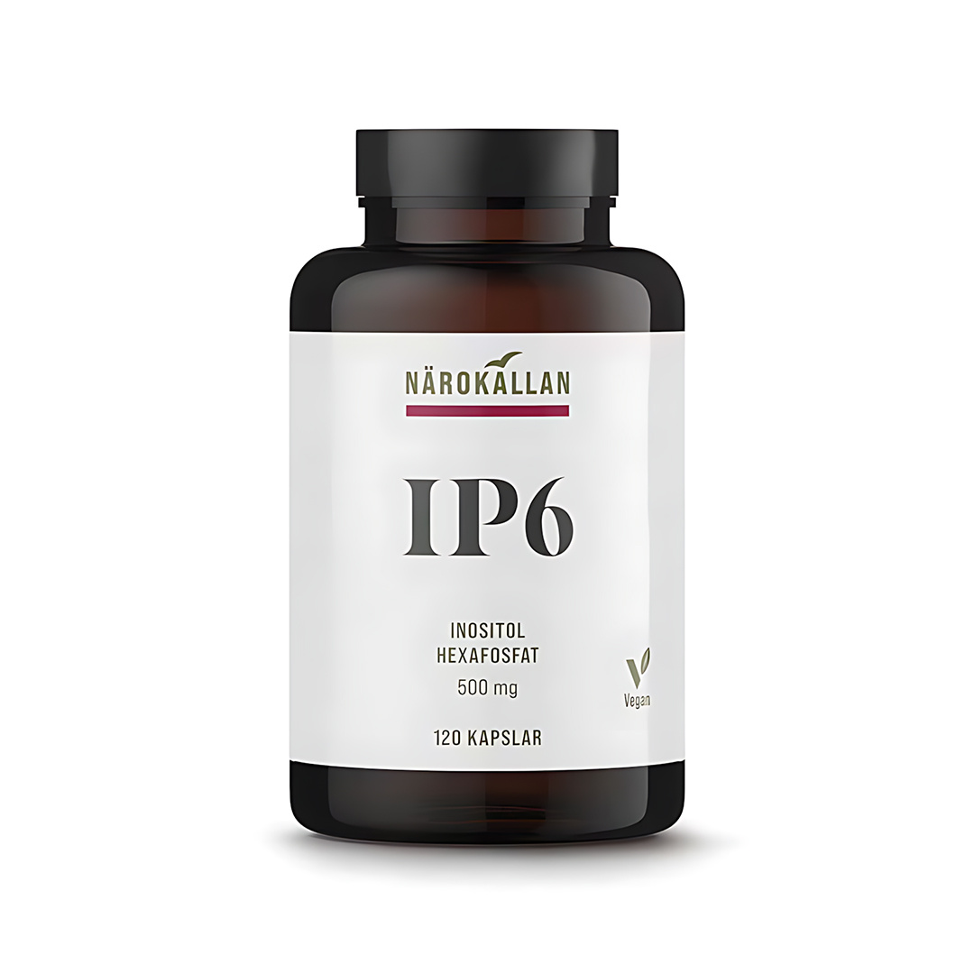 Ingredienser: IP6 inositol (kalsium-magnesium inositolheksafosfat), vegetabilsk kapsel (pullulan), fyllstoff (tapioka), leucin.